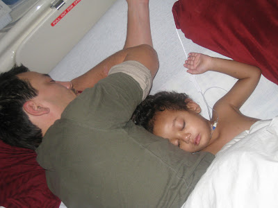Below is what Zen and I usually look like when we wake up in the morning. Picture that with morning breath and doctors hanging over our bed, first thing in the a.m., wondering how things are going. They definitely don't see us at our best! uuuuuuugly.