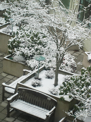 It's really pretty to look out the window when there's been a fresh snowfall. We've lucked out and have had 3 of those so far! This is the view from our room window.